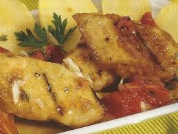 Em seguida passe as postas de peixe por farinha e frite em azeite. Escorra. Retire o azeite do lume, junte a vinha-d´alhos (marinada) e leve novamente ao lume até levantar fervura. Coe e deite sobre as postas de espada.